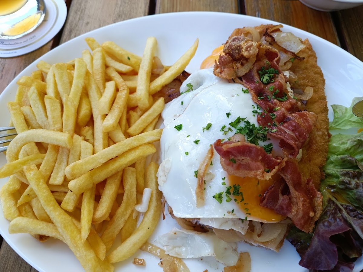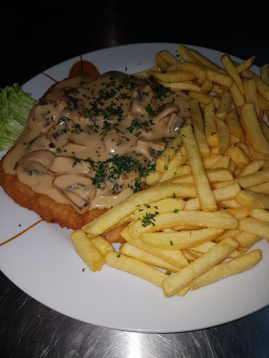 The menu keeps things classic and satisfying, focusing on dishes that people genuinely crave. Fresh salads bring a lighter option to the table, perfect as a starter or a simple meal on their own. If you’re in the mood for something hearty, the Schnitzel Spezial is a standout, delivering that familiar crispy bite paired with rich flavors. Just as popular is the Champignionrahmschnitzel, served with a creamy mushroom sauce that feels indulgent without being over the top. For something quick and comforting, the Currywurst mit Pommes Frites hits the spot, especially when you want a no-fuss plate that still feels filling and familiar.